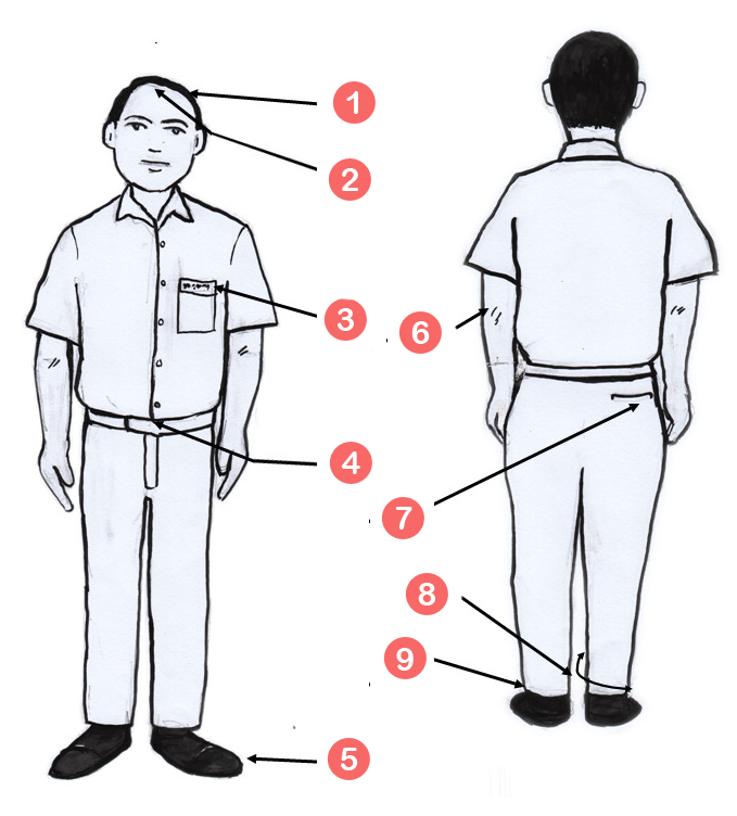 - பள்ளி பேட்ஜ் பாக்கெட்டின் வலது மற்றும் மேல் மூலையில் தைக்கப்பட வேண்டும்.